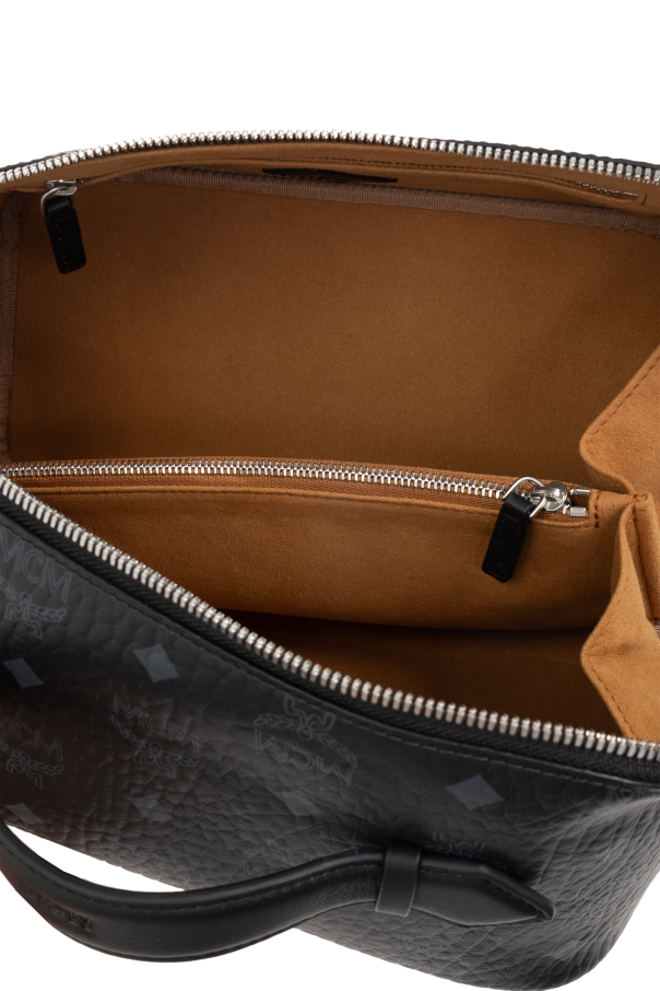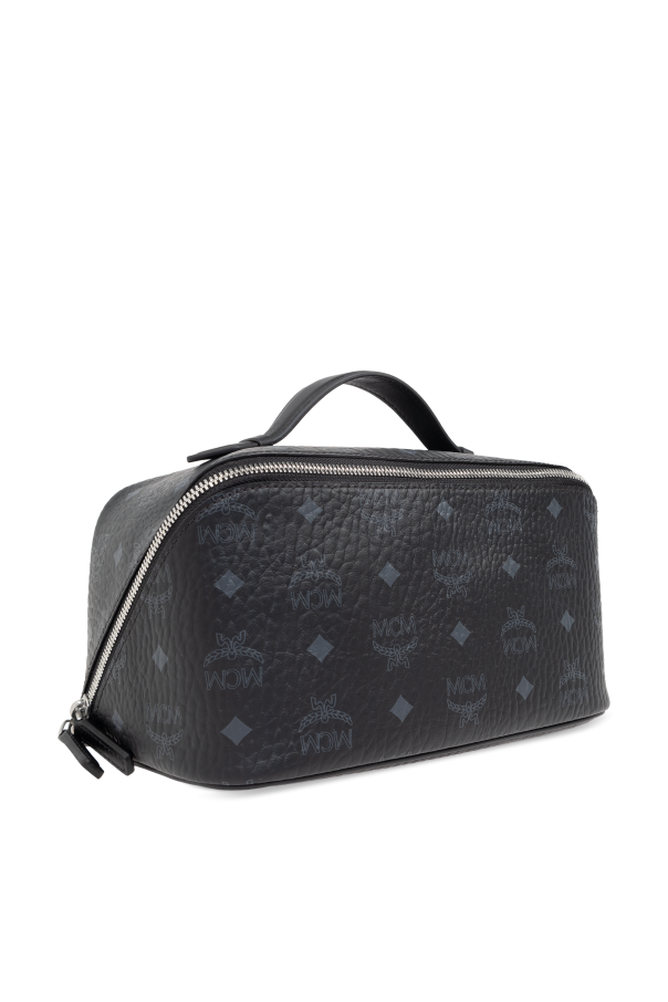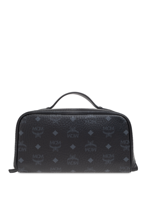 Introducing the exquisite Visetos Printed Cosmetic Bag by celebrated designer, MCM. This rectangular-shaped marvel, with its gracefully rounded edges, is a testament to sophistication and refined taste. Its dominant black hue elegantly showcases the iconic monogram pattern, composed of repeating letters and symbols quintessential to the MCM brand, lending it an air of exclusivity. The exterior, reminiscent of leather with its textured finish, adds a layer of mystery and luxury, while the interior surprises with a contrasting shade of brown or beige, creating a striking balance. The main compartment, secured by a dual-pull zipper, reveals a spacious interior that features an additional zippered pocket and two slip pockets, ensuring optimal organization of your essentials. A convenient handle makes this cosmetic bag not only a symbol of luxury but also a testament to practicality. Every detail, from the precision of its construction to the quality of materials, underscores this piece as a high-end product from a renowned designer. The use of 100% canvas for durability, combined with the luxurious design, makes it a must-have accessory for those who appreciate the finer things in life. Why Purchase This Product? Luxurious design with iconic Visetos monogram pattern. High-quality 100% canvas material with leather-like texture. Spacious interior with one zippered pocket and two slip pockets for superior organization. Contrasting interior color for a visually stunning effect. Ease of carrying with a stylish and convenient handle.