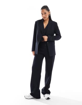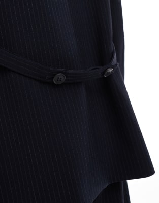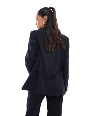 Pull&Bear oversized blazer with back strap detail co-ord in navy pinstripe