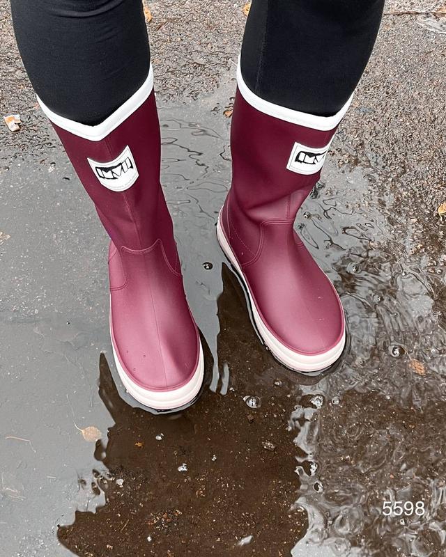 Резиновые сапожки, внутри текстиль. Удобные, идут на среднюю/ширую стопу. Высота подошвы 3,5 см. Высота с подошвой 31 см. Цвет бордо. По паголенке свободные.37-23,5 см