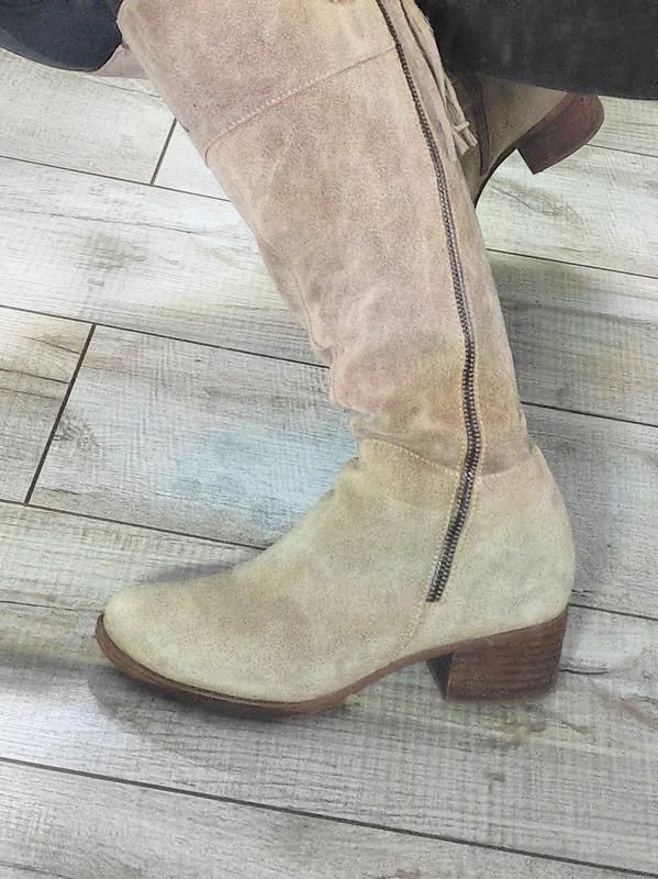 Матеріал верху:Замша ,Висота каблука:Низький ,Висота виробу:Високі ,Халява:Широкая ,Сезон:Осінь , Демісезон ,Довжина устілки:23 см , 23,5 см ,Опис