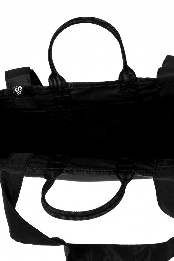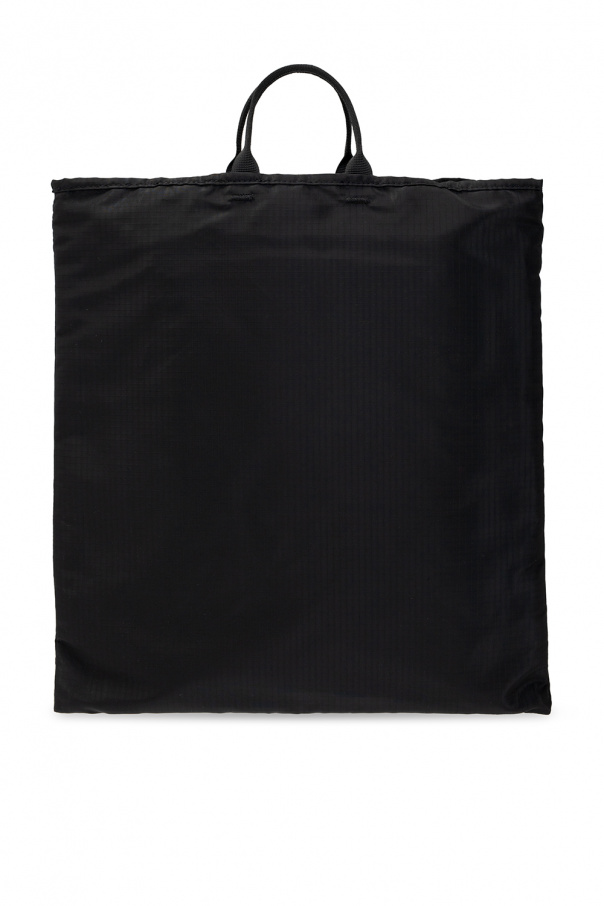 Black shopper bag from Acne Studios. Crafted from durable ripstop fabric, this design features a metal logo appliqué, four half-round handles and one internal compartment with a mesh pocket.