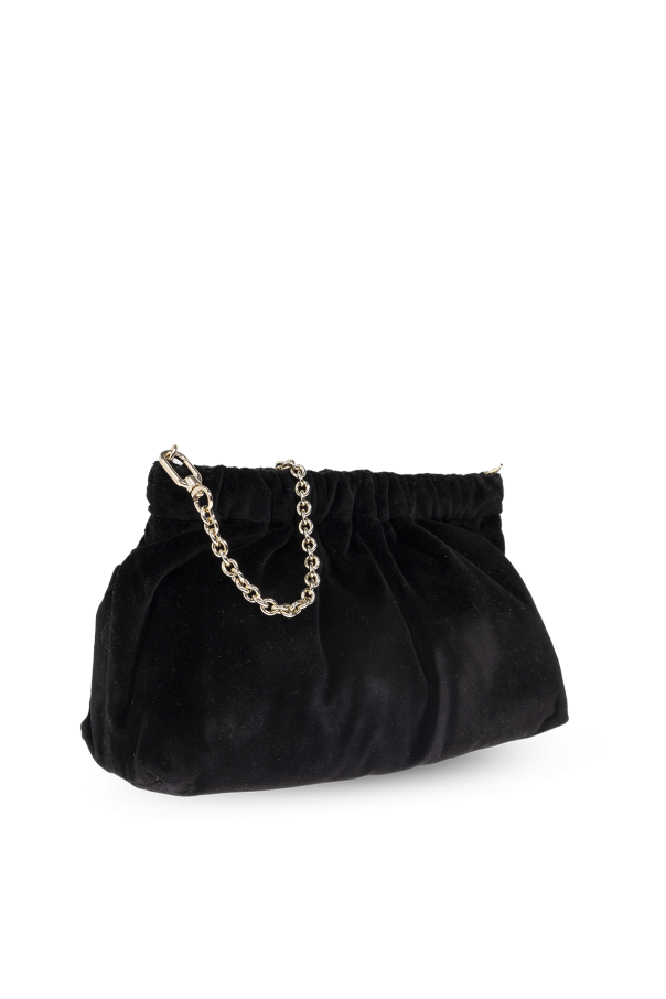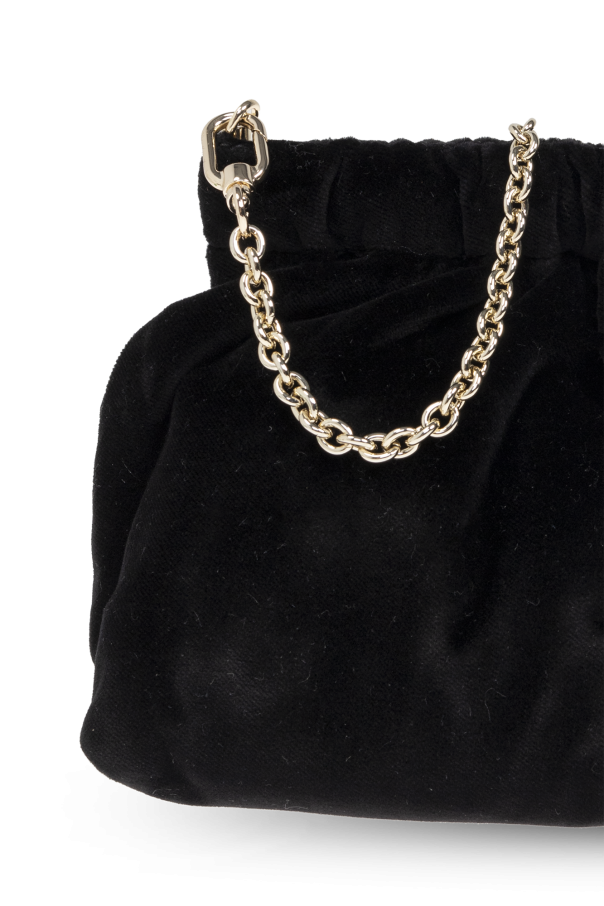 Introducing the Nuvola Mini, a quintessential shoulder bag from the exclusive Furla collection. This exquisite piece, hailing from the illustrious Italian brand established in Bologna in 1927, epitomizes the perfect blend of classic sophistication and modern design. The Nuvola Mini boasts a timeless rectangular silhouette with subtly rounded edges, crafted from soft velour that exudes luxury and elegance. The bag is beautifully accented with a solid gold chain, serving as a shoulder strap, which enhances its refined allure. A gently ruched top adds a touch of casual elegance, making it a versatile accessory for any occasion. Inside, the bag is lined with a sleek black fabric and features a slip pocket for your essentials, secured with a magnetic closure for both style and functionality. Why Choose This Product? Exclusive design by Furla, a symbol of Italian craftsmanship. Luxurious materials: a blend of cotton, leather, and elastane. Elegant gold chain strap for a touch of sophistication. Practical interior with a secure magnetic closure.