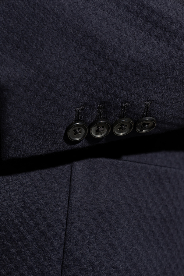 Navy blue blazer from Paul Smith. Crafted from textured cotton, this style features button fastenings, notch lapels, three slip pockets on the front, a double back vent and long sleeves with button cuffs.