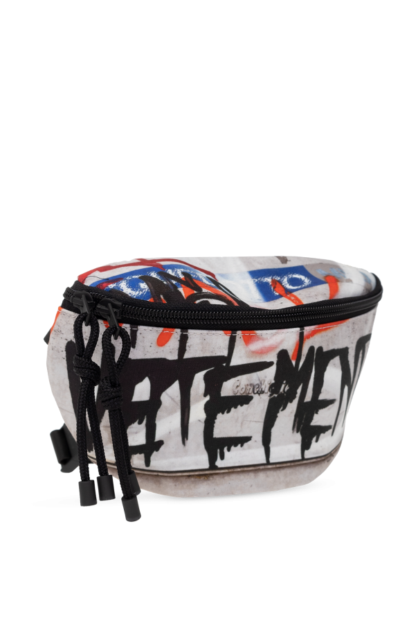 Multicoloured ‘Graffiti’ belt bag from VETEMENTS. Crafted from fabric, this design secures with a two-way zipper and showcases a decorative graphic print with the brand\'s logo. It is complete with an adjustable strap, one back zip pocket and one internal compartment.