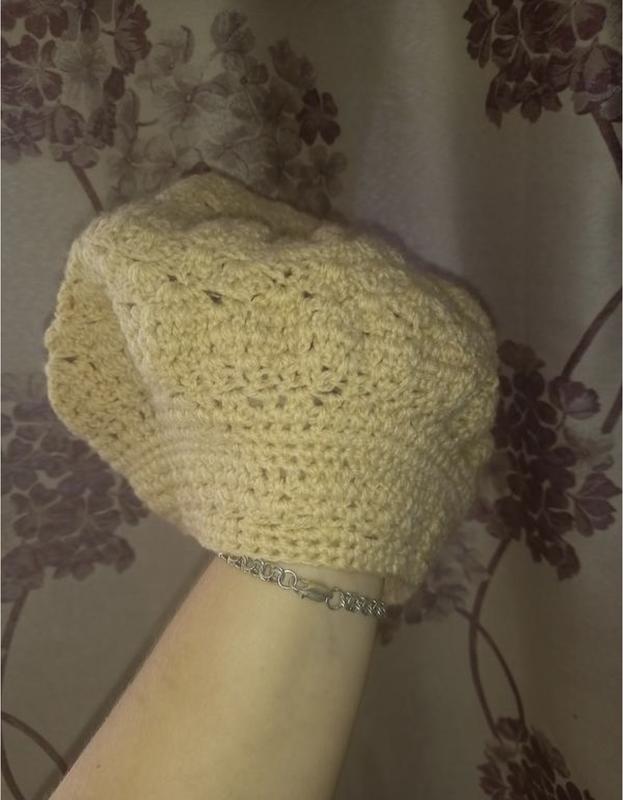 Вязаный крючком. Не колеться. Такой способ вязки позволяет берету хорошо держать форму.