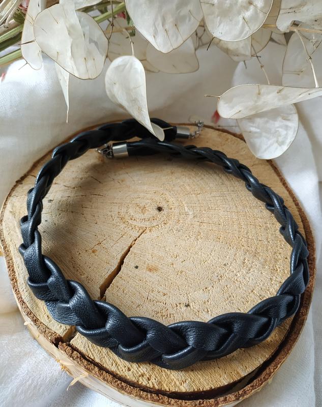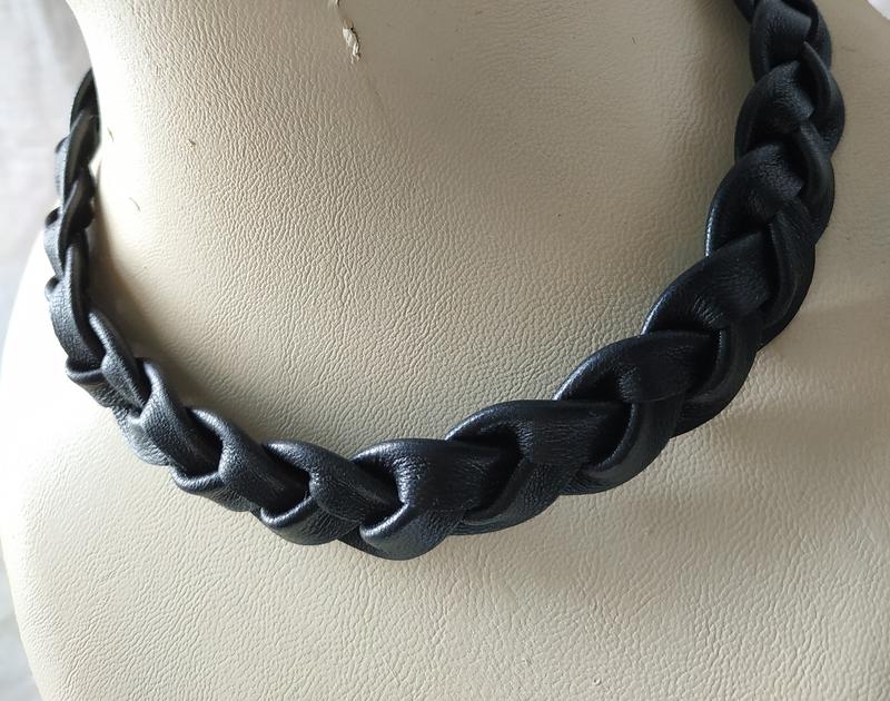 Лаконичное стильное колье ручной работы из натуральной черной кожи на фурнитуре из нержавеющей стали. Нержавеющая сталь не потемнеет, не поржавеет, не облезет, не вызовет аллергию и позволит украшению долгие годы радовать хозяйку! Длина по шее регулируется до 42-47 см. Ширина около 1,8 см. Очень стильно смотрится с черной кожанкой.