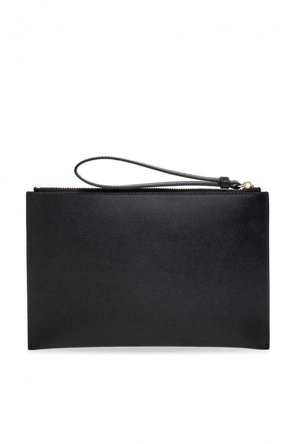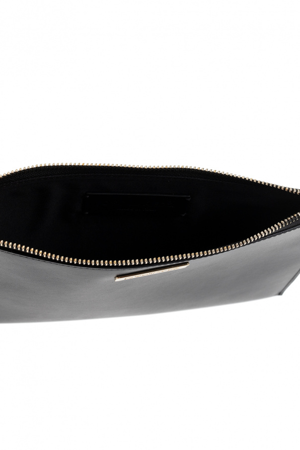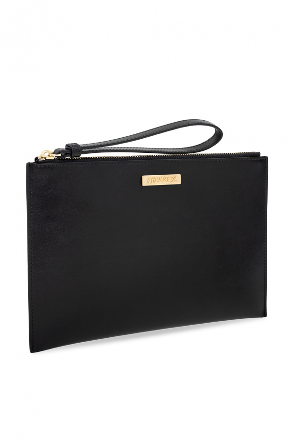 Black clutch from Dsquared2. Made of calf leather, this design fastens via a zip and features gold-tone metal hardware – including a logo plaque, a wrist strap and one internal compartment.