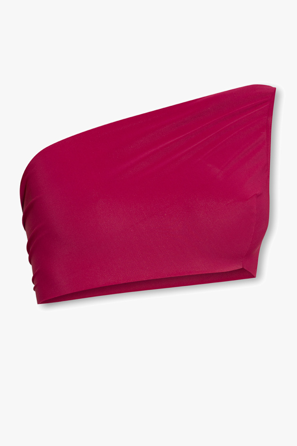 Dark pink one-shoulder bikini top with decorative trimming from Rick Owens.