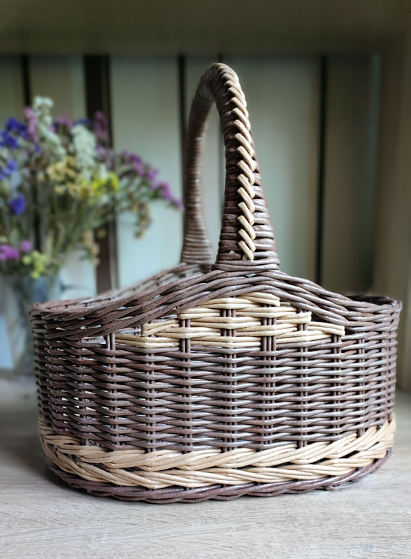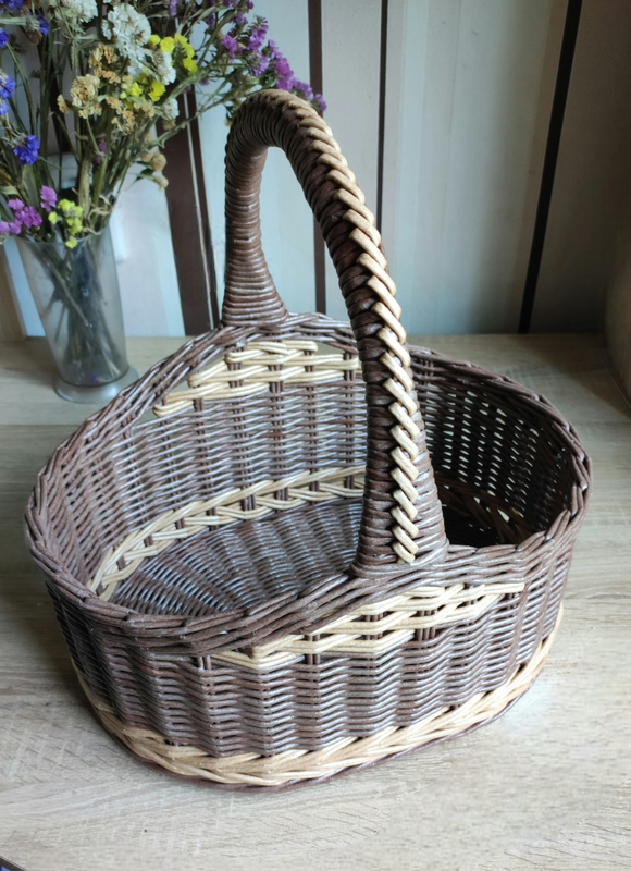 Корзина изготовлена из экологически чистой бумажной лозы. Прочная, не боится влаги.