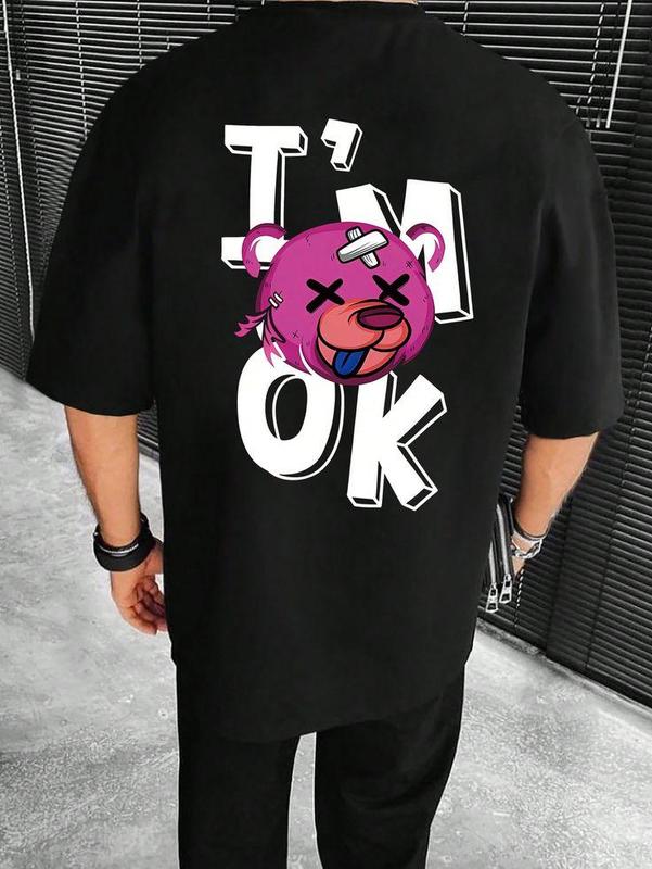 Мужская яркая оверсайз футболка черного цвета с модным принтом -