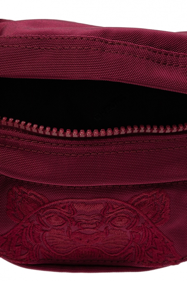 Maroon belt bag from Kenzo. Putting on view the label\'s highly recognisable motif of tiger head accompanied by a logo embroidery, this item fastens via zip and employs two external zip pockets on the front and back, one internal compartment and an adjustable strap.