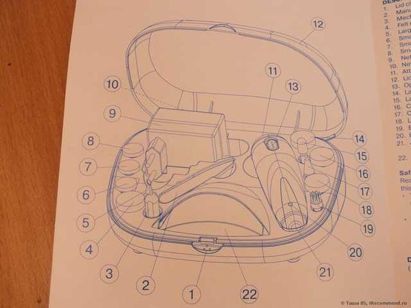 12 насадок (полірувальні,фрези для манікюру та педикюр, м'яка лопатка для кутикули, щітка для чистки )