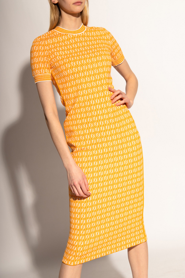 Orange and white dress with a logo from Fendi. This short sleeve design features a round neck and a logo detail.