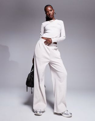 Weekend Collective wide leg joggers and long sleeve top in oatmeal rib