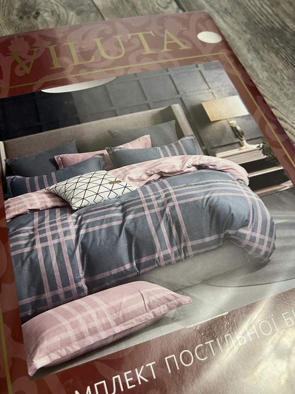 Комплект постільної білизни розмір євро від фірми Viluta, підковдра 220*220, простирадло 220*240, 2 наволочки 70*70. Не втрачає колір, не кошлатиться, склпд 100% бавовна.