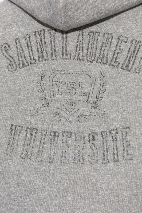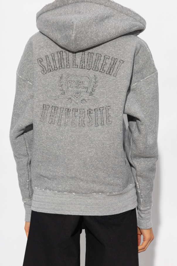 Grey loose-fitting hoodie from Saint Laurent. Made of cotton, this garment features a hood with vintage effect trimming, front pocket and ribbed trims at the hem and cuffs.