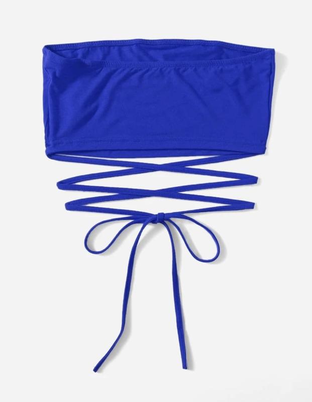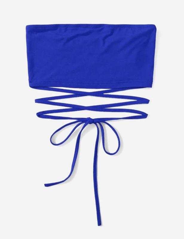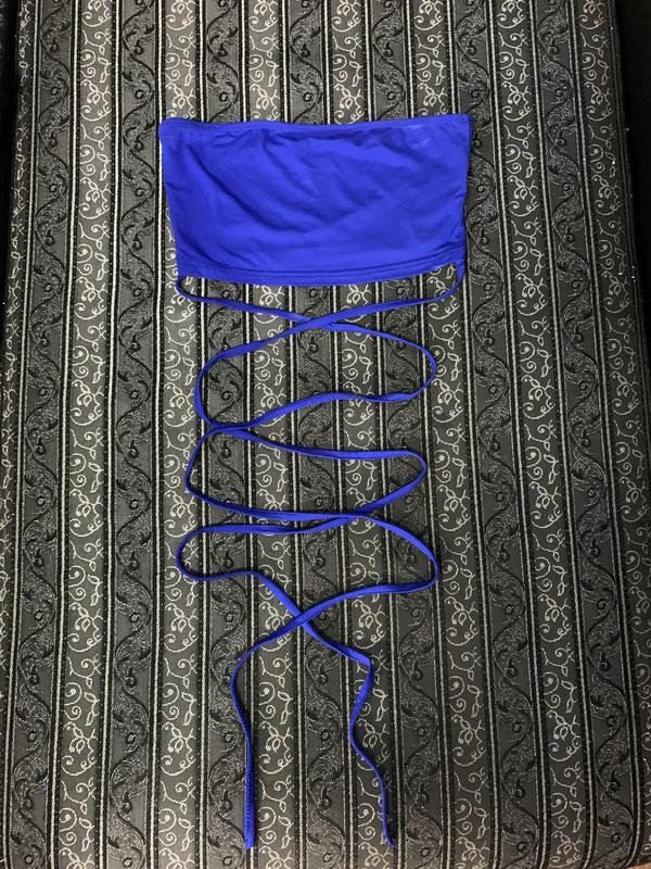 Топ бандо синий, длинные завязки, которые можно завязывать вокруг талии, Shein, размер хс-с, состояние новой вещи, не светит