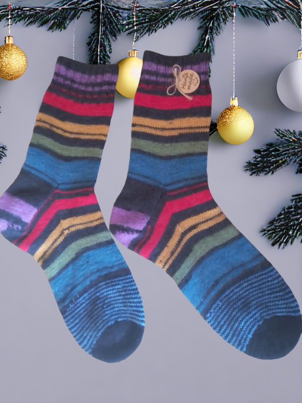 Яркие шерстяные вязаные мужские носки ручной работы размером