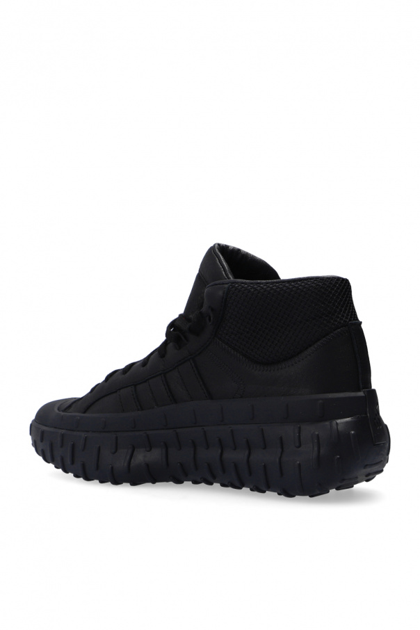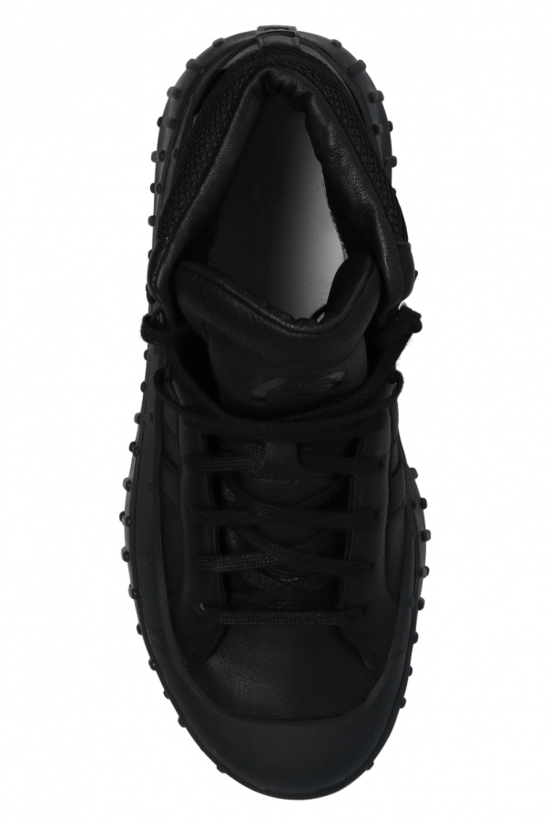 Black ‘GR.1P’ high-top sneakers from Y-3 Yohji Yamamoto. Crafted from leather with mesh trims, this lace-up design features a logo embossed on the tongue, EVA midsole, lining made of waterproof and breathable GORE-TEX as well as a black rubber outsole.