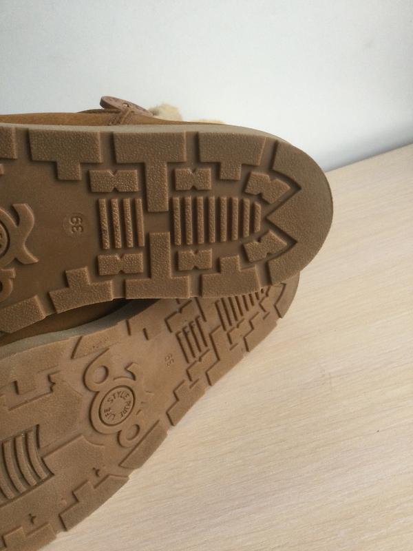 Добротная натуральная кожа, внутри мех. Застегивается на два больших брендованва пуговицы. Эффектно смотрятся на ноге. Стелька 25,3см. Цвет рыжий. Качественный комфортный бренд.