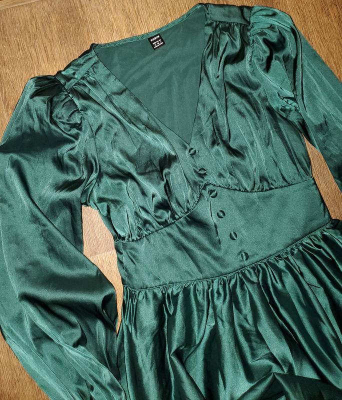 Сатинове атласне плаття Shein в смарагдовому кольорі, маркування р. М, але підійде на С, невелике М. На фото зріст 160 см 83-64-83, на мене велику, одягнене для прикладу. Стан ідеальний. Якість класна, shein прямо здивував мене. Дуже красивий колір смарагдова. Змійка збоку. Заміри за запитом. Повернення не передбачено. Ціна без торгу, плачу Шафе 14.6%