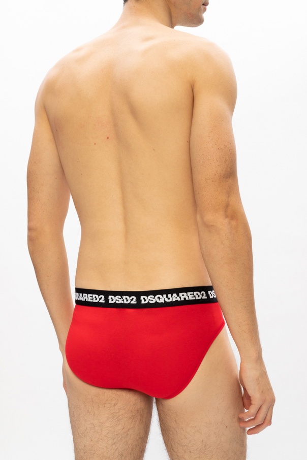Red briefs from Dsquared2. Crafted from cotton, this design features a black elastic waistband with a white logo embroidery.