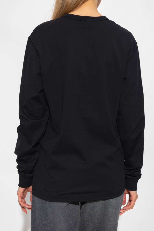 Black crewneck T-shirt from Acne Studios. Made of cotton, this long sleeve design features a logo patch and ribbed trims at the neck and cuffs.
