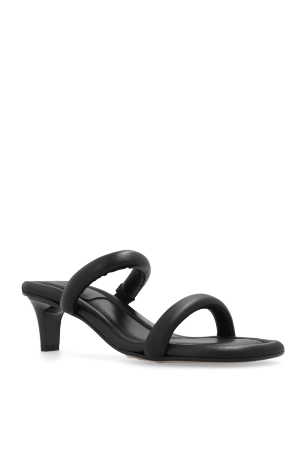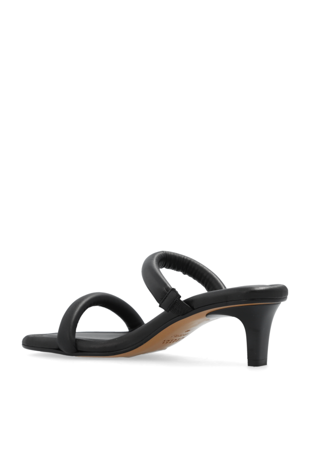 Black ‘Roreen’ mules from Isabel Marant. Made of lamb leather with a square toe, this model sits on a light brown leather sole and features two front straps.
