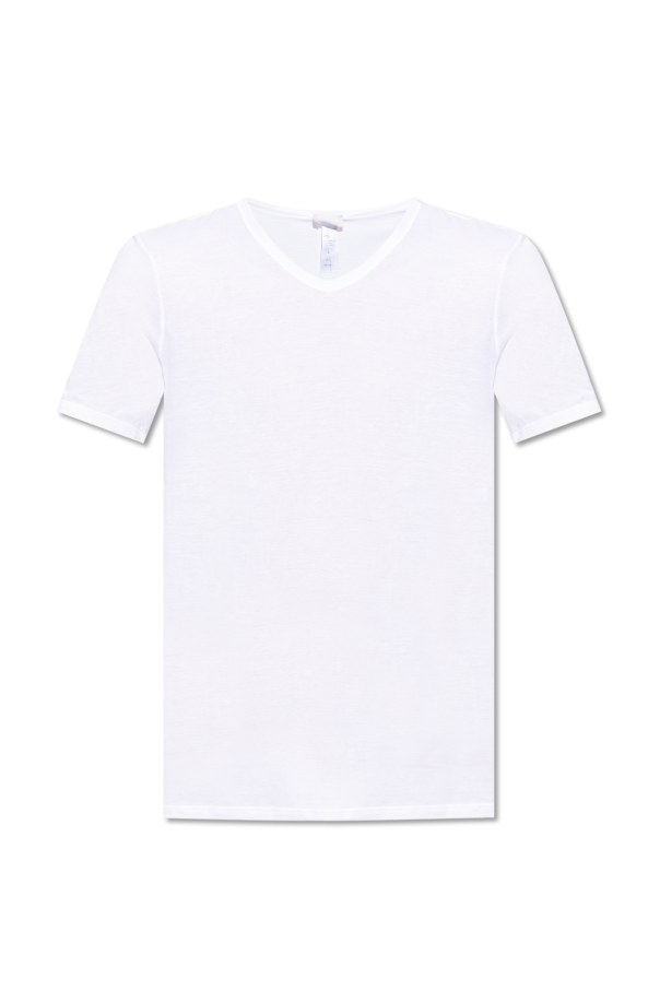 White underwear T-shirt from Hanro. Made from cotton, this style features a V-neckline and short sleeves.
