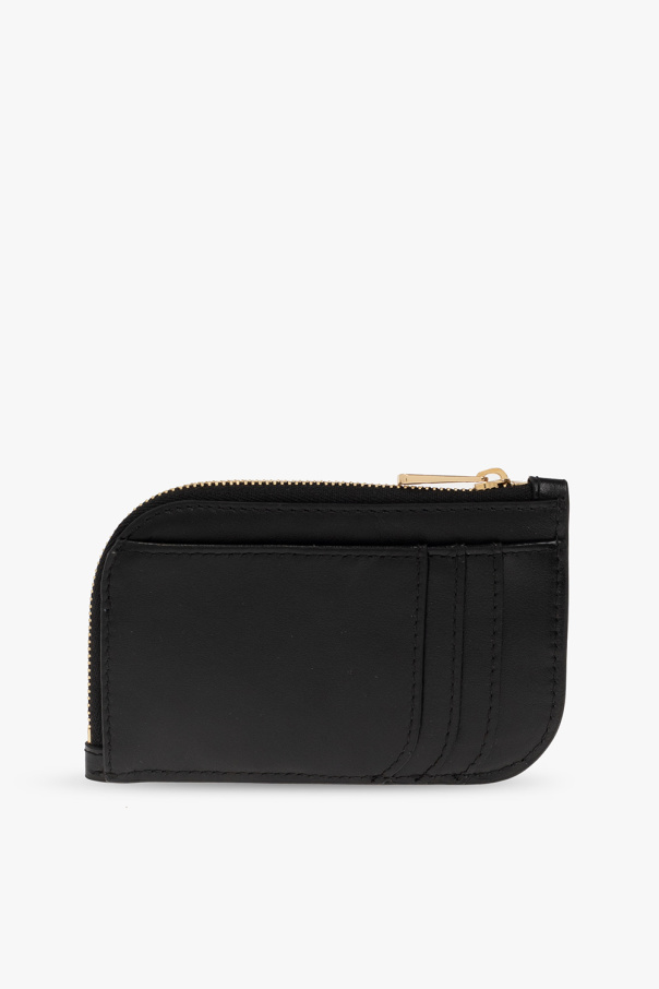 Black ‘Tilda’ card case from See By Chloé. Crafted from smooth leather and suede, this design showcases decorative topstitched details and round logo application on the front, one slip pocket and three card slots at the back and one zip pocket with a keyring inside.