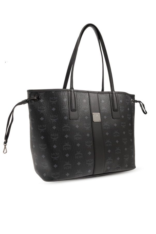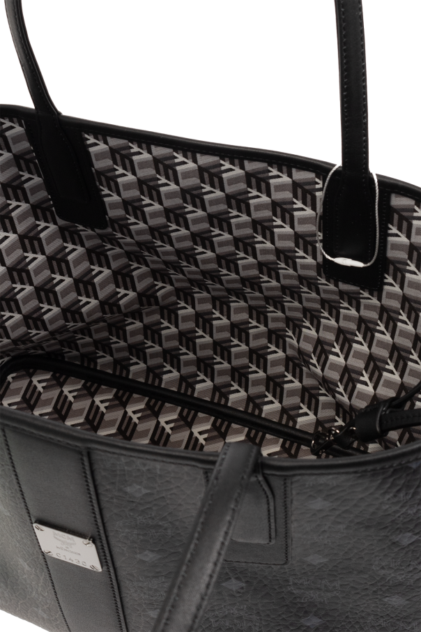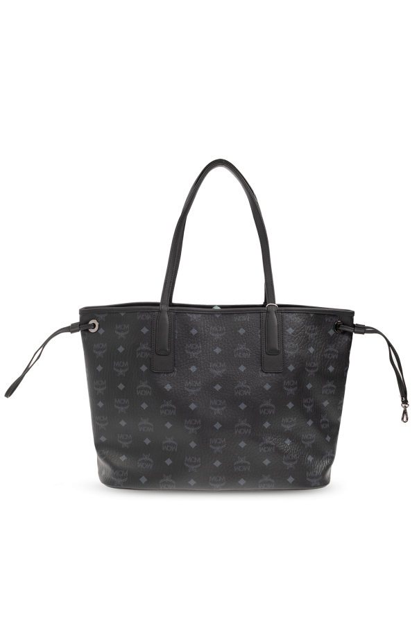 Black ‘Liz’ reversible shopper bag from MCM. Crafted from MCM, this model is decorated with a grey logo print It is complete with two half-round handles, drawstrings at the sides, silver-tone metal hardware and one internal compartment with cotton lining and a geometric pattern in grey, white and black. Comes with a zipped pouch.