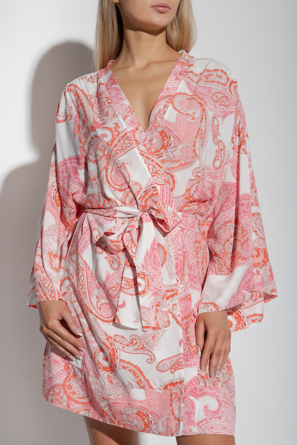 White and orange ‘Aria’ kimono with a floral motif and waist tie from Melissa Odabash.