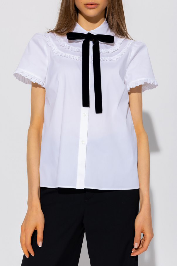 White shirt from Red Valentino. Crafted from a cotton blend, this garment features button fastenings, decorative ruffles, neckline with a removable black tie and short sleeves.