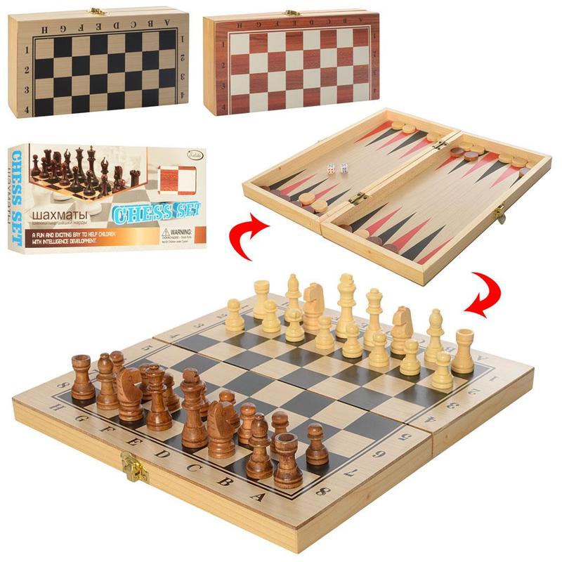 Шахматы 3в1, шашки, нарды, 2 цвета, в коробке 29,5-15-4 см.
