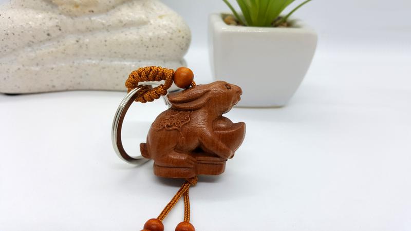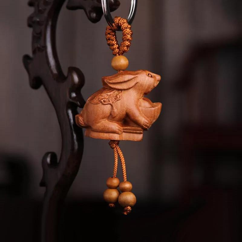 🐰✨ Брелок-амулет для ключів або сумки з об'ємною дерев'яною різьбленою підвіскою з рельєфом деталізованого кролика. Підвіска об'ємна 3D. Дивіться відео огляд цього брелка (під фотографіями товару), щоб побачити всю його красу. 🐰✨