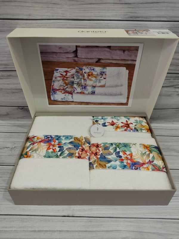 Набор махровых полотенец 3 шт в подарочной коробке Dantela Турция вставка из