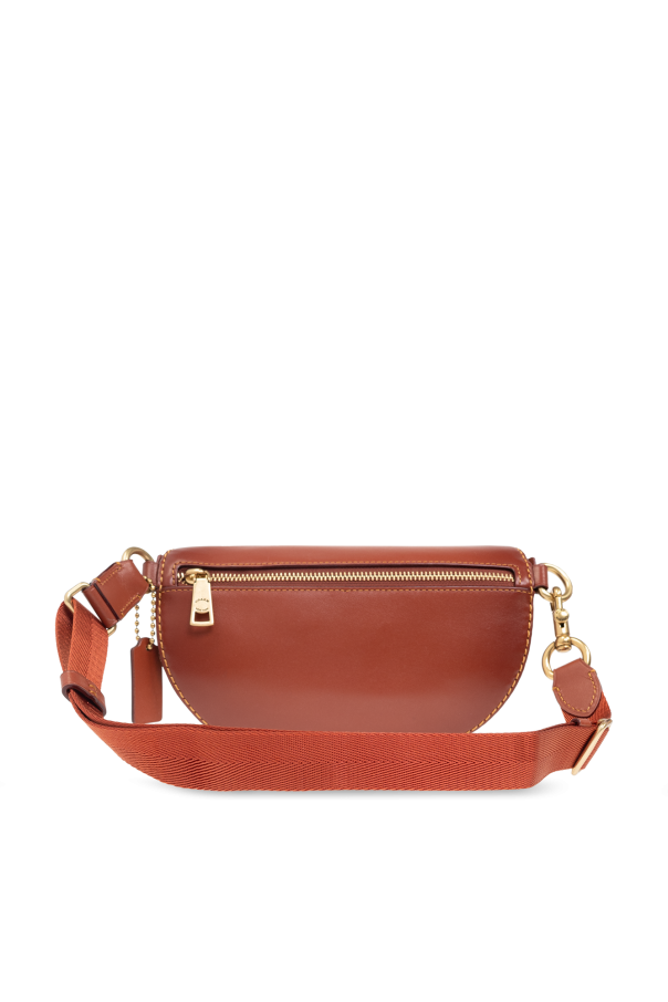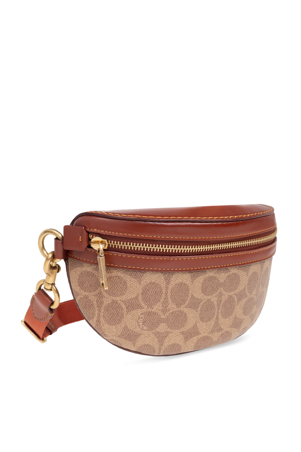 Beige and brown ‘Bethany’ belt bag from Coach. Made of canvas with a monogram and leather trims, this design features a zip fastening, zipped back pocket, adjustable strap, one internal compartment and gold-tone metal hardware.