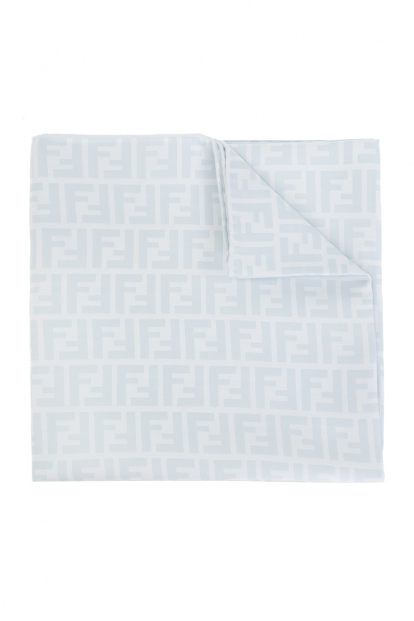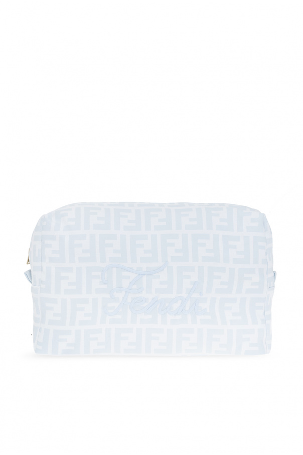Light blue and white beauty case & blanket set from Fendi Kids embellished with a logo motif. Wash bag features a zip fastening, an embroidered logo and one internal compartment.