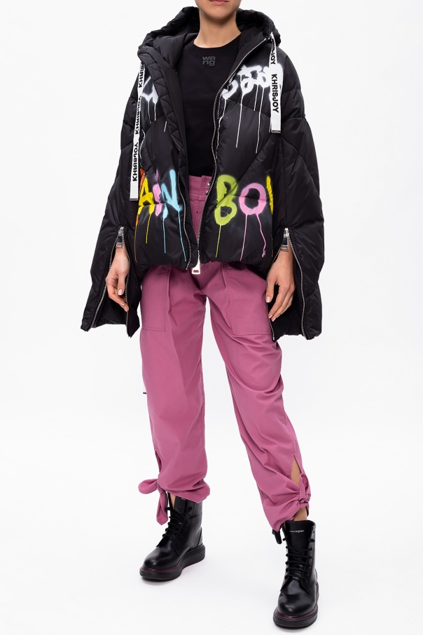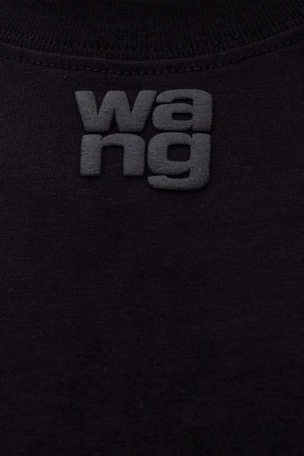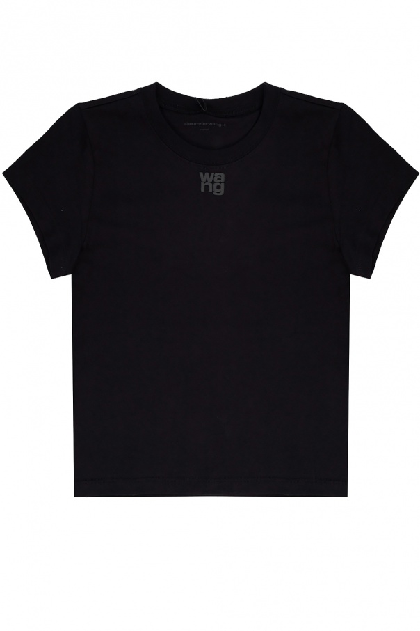 Black T-shirt from T by Alexander Wang. Crafted from cotton, this short sleeve design is decorated with a blue logo print.