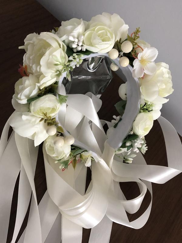 Венчик украинский белый, свадебный с цветами. Хорошее дополнение для вашей вышиванки или свадебного платья. Подойдет как для ребенка, так и для взрослого человека. Цветы хорошо закреплены. Также подойдет для первого виноделия. Может быть с лентами и без.