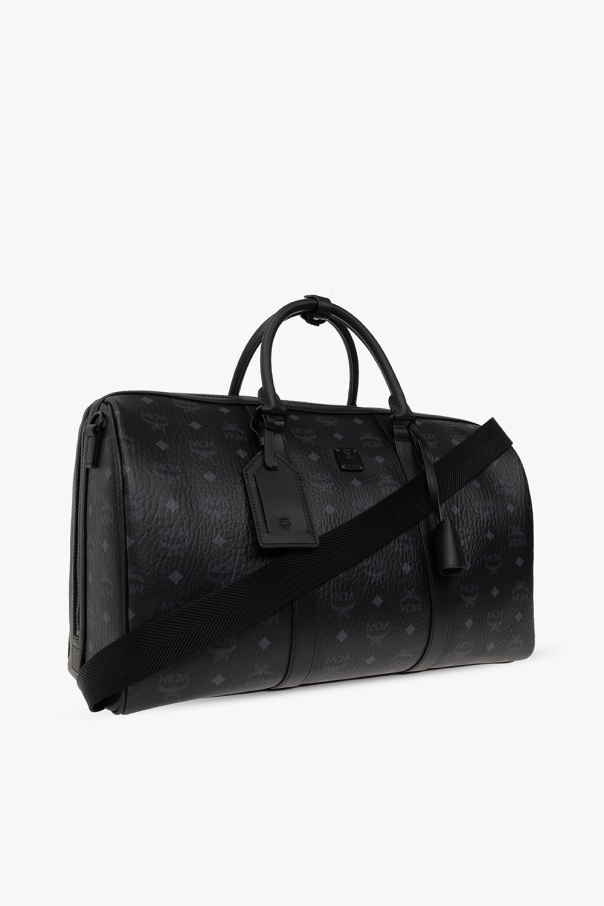 Black and grey ‘Ottomar’ duffel bag from MCM. Crafted in coated ‘Visetos’ monogrammed canvas, this design features a two-way zip fastening, logo-engraved hardware on the front, a back slip pocket, two half-round handles, an adjustable and detachable shoulder strap and one internal compartment with two slip pockets and one zip pocket. Comes with two pendants – one has a keyed padlock.