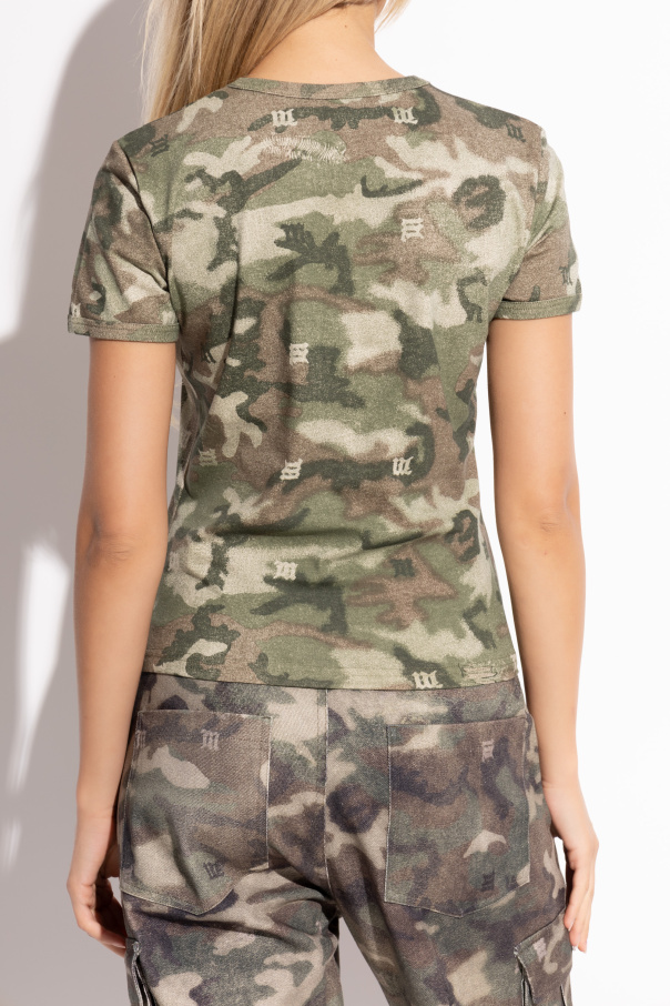 Introducing the Green Camo T-Shirt from our exclusive collection, designed by the renowned brand MISBHV. This women\'s T-shirt epitomizes chic military-inspired fashion with its distinctive camouflage pattern in shades of green, brown, beige, and black. Crafted from 100% premium cotton, this T-shirt offers unparalleled softness and comfort. The classic cut, featuring short sleeves and a round neckline, ensures a versatile fit suitable for any wardrobe. The tailored silhouette enhances the overall elegance, making it perfect for both casual and sophisticated ensembles. The front of the T-shirt is adorned with the bold, white \"MISBHV\" logo, positioned on the chest. Complementing this, subtle black \"M\" prints are scattered across the fabric, adding a touch of unique brand identity. Why Choose This Product? Exclusive Design: Unique camouflage pattern with intricate \"MISBHV\" branding. High-Quality Material: Made from 100% premium cotton for ultimate comfort. Versatile Style: Perfectly pairs with both casual and elegant outfits. Tailored Fit: Classic cut that complements the figure. Renowned Designer: Created by the esteemed streetwear brand MISBHV.