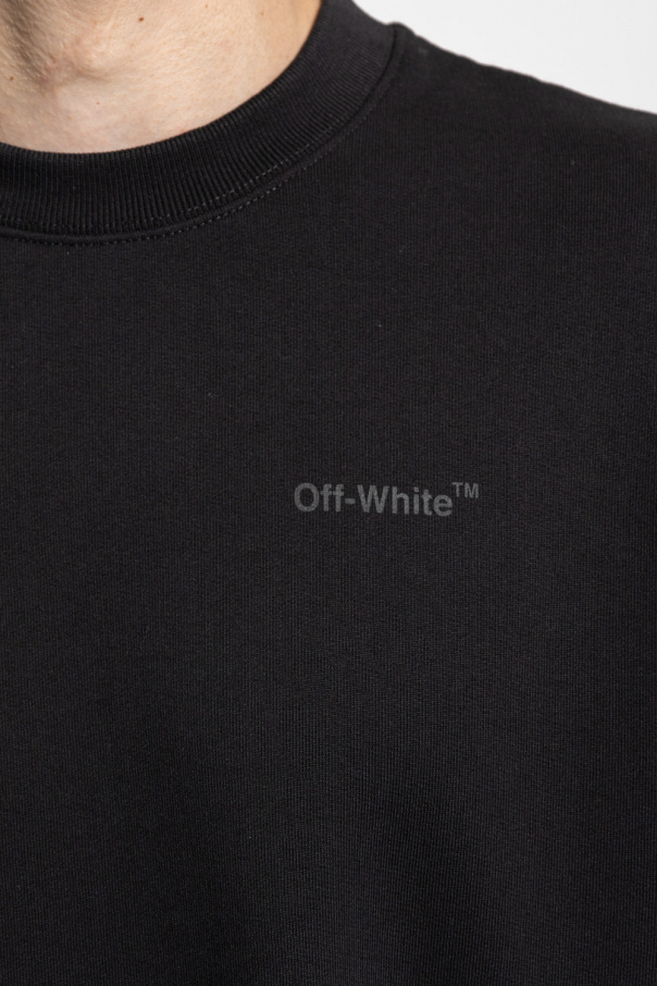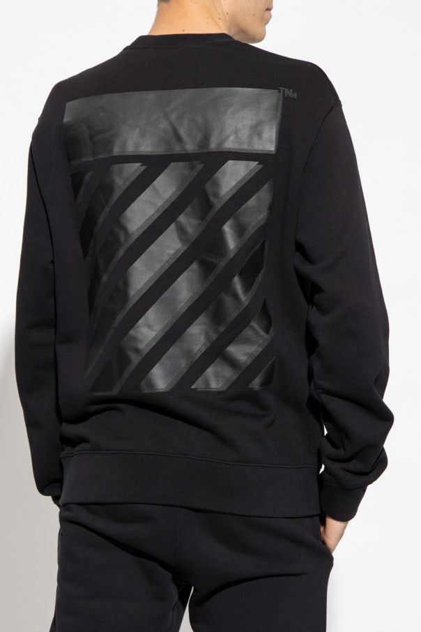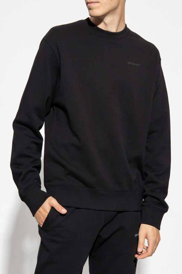 Black hoodie from Off-White. Crafted from cotton, this crewneck design features a logo print, the label’s signature diagonal stripes and ribbed trims at the neck, hem and cuffs.