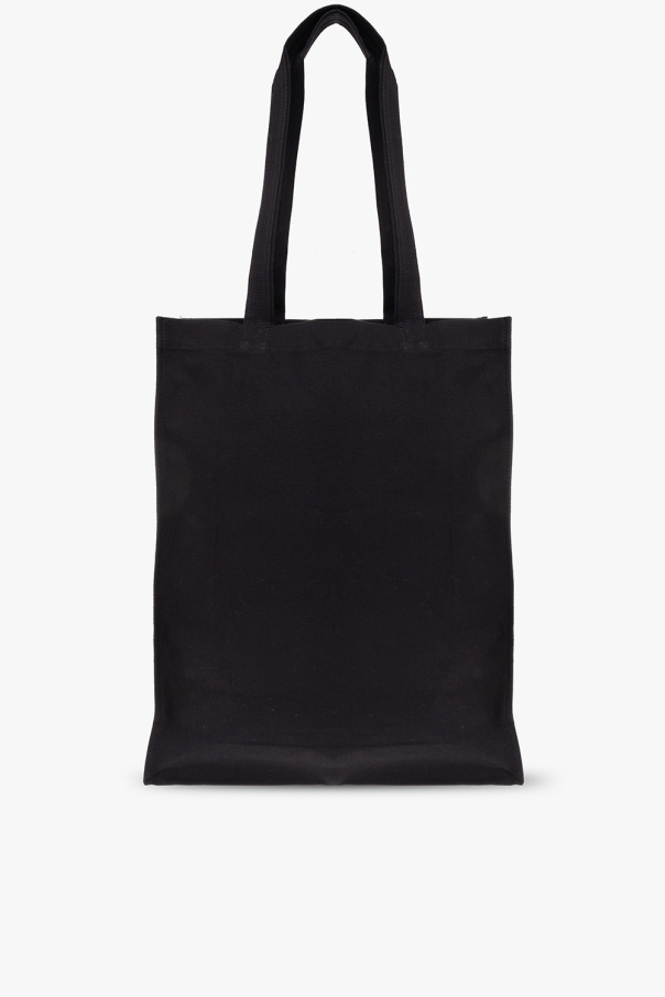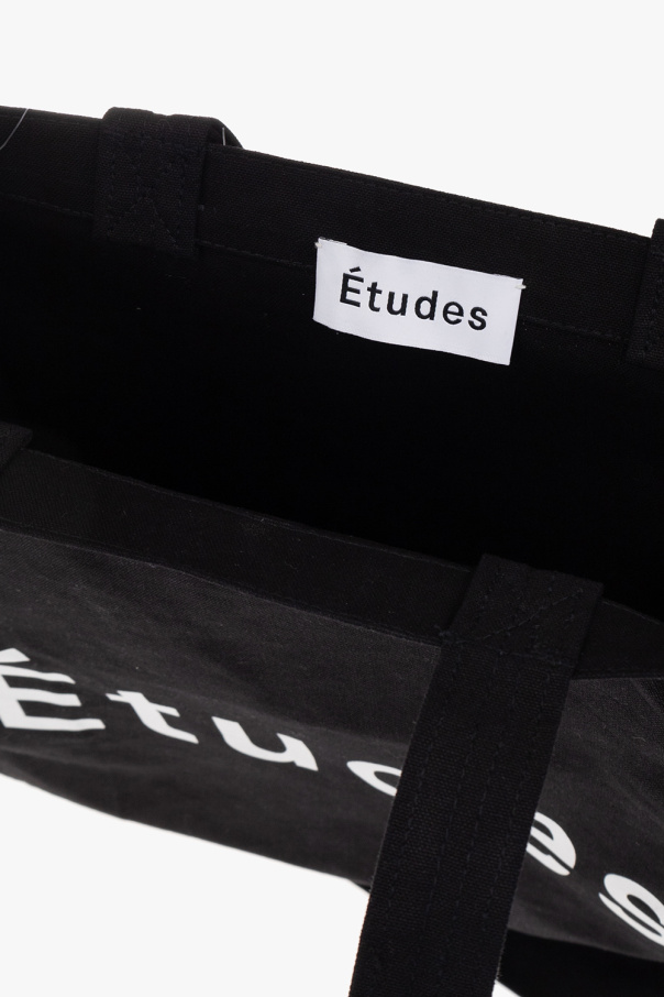 Black shopper from Etudes. Made of organic cotton, this design features a white logo print, two half-round handles and one internal compartment.