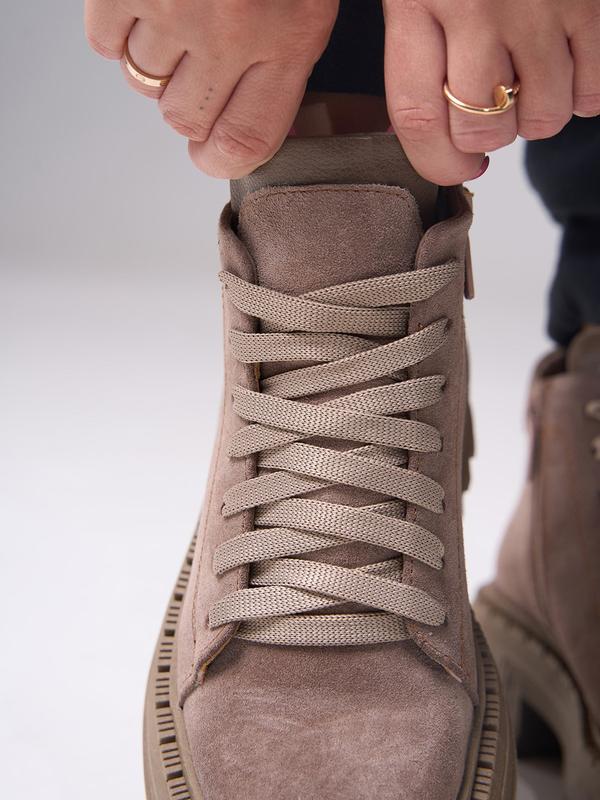 Бежевые ботинки из натуральной замши на байке с кожаными вставками. Модель с