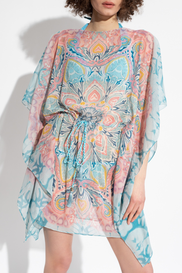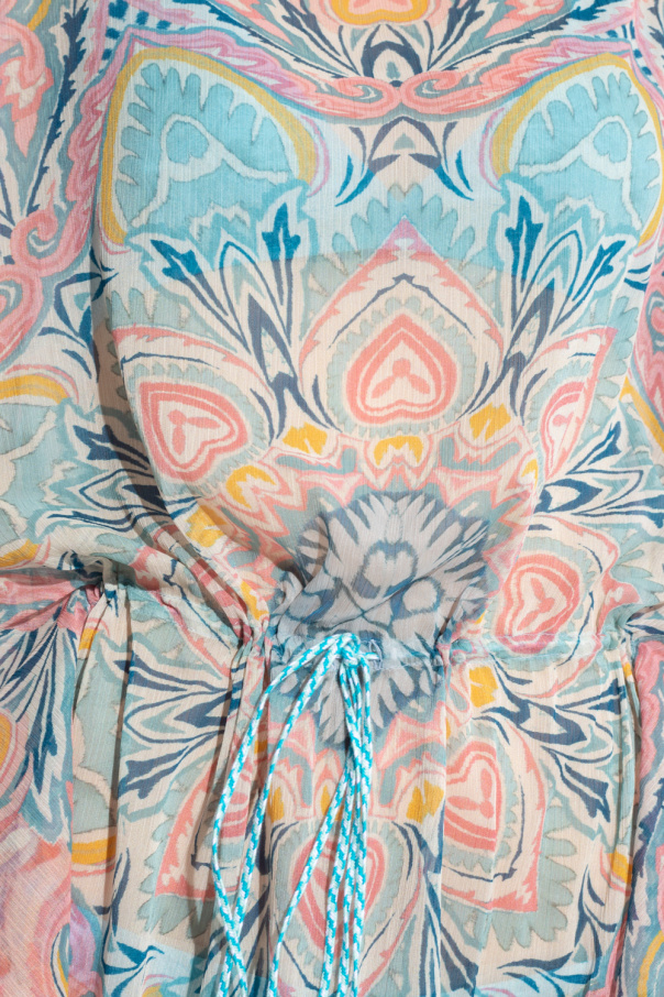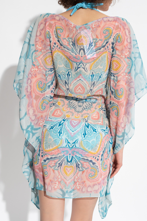 Multicoloured beach dress from Etro. Crafted in semi-sheer chiffon with a cropped, relaxed fit, this style showcases the brand\'s signature paisley pattern with a watercolor effect, a drawstring fastening, a boat neck and short sleeves.