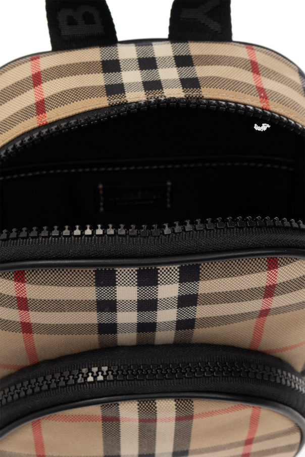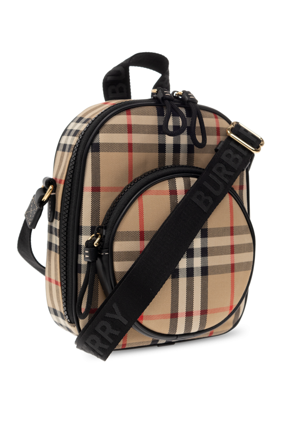 Beige and black shoulder bag from Burberry Kids. Crafted from fabric flaunting the brand\'s signature colourful check pattern, this design secures with a two-way zip and features a half-round handle, an adjustable shoulder strap, one zip pocket on the front, gold-tone metal hardware and one internal compartment with a slip pocket.