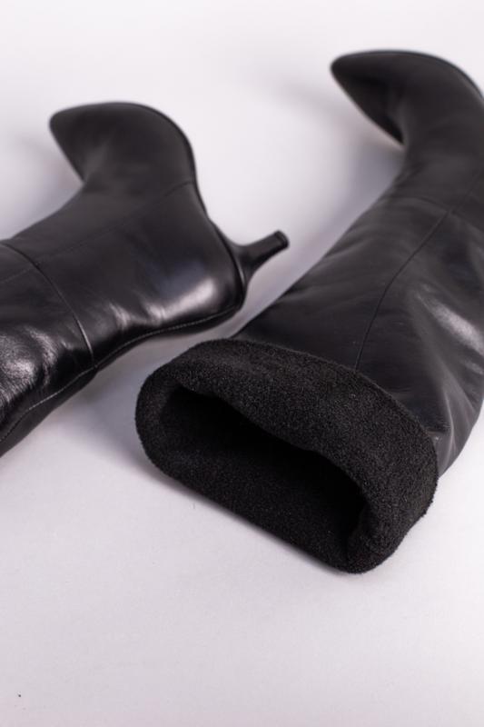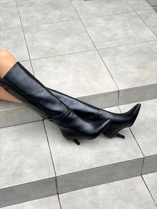 Укр почтаЖенственные сапоги трубы из натуральной кожи черного цвета на удобном каблуке шпильке 6 см.