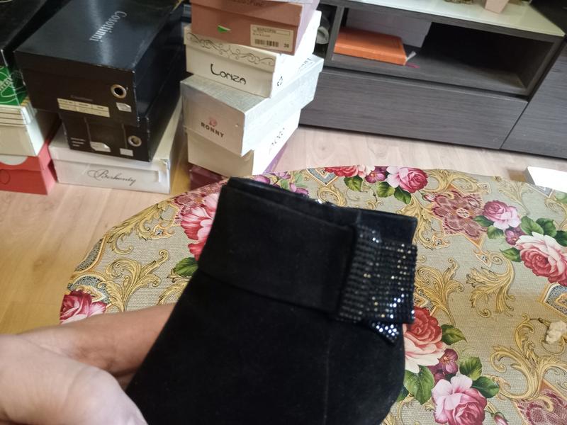 Высота сапожек видна на фото.Искуственная замша, есть следы носки но не критичные.