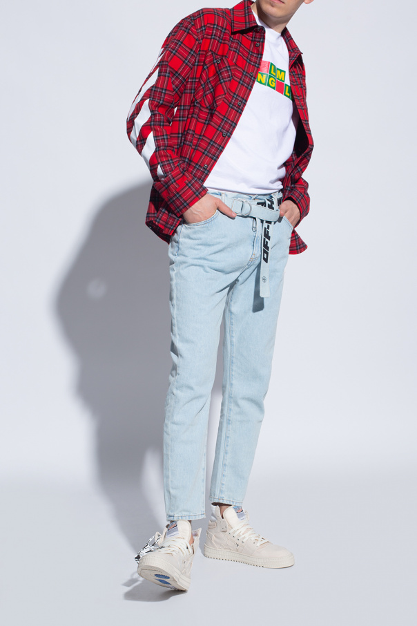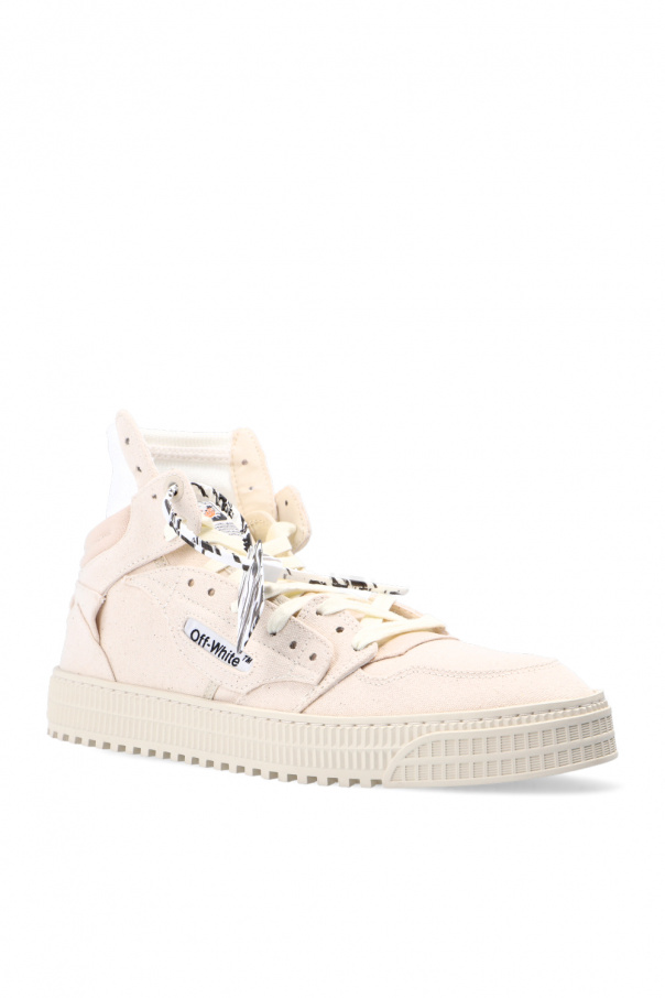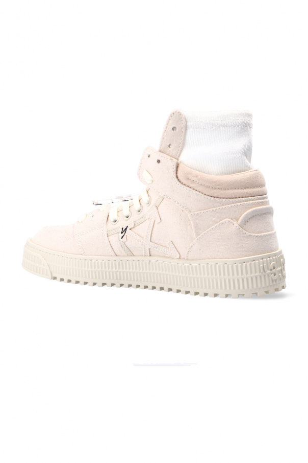 Beige ‘3.0 Off Court Vintage’ sneakers from Off-White. Crafted from canvas, this lace-up pair boasts a high-top silhouette, a logo patch on the tongue, the signature black and white zip tie tag and a beige rubber sole.